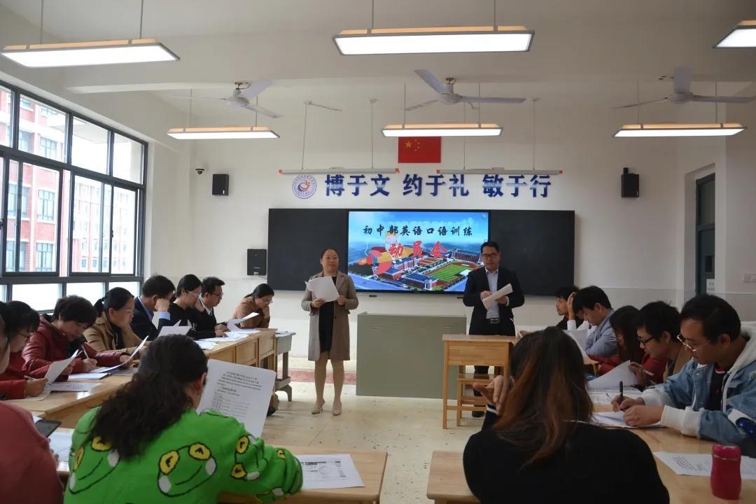 2020年10月底,永州市教育局下发了“初一新生英语口语比赛”的通知,接到通知的第一时间,初中部唐文青校长十分重视,立即展开部署,决定由初中部教研室主任邓国毅老师牵头,对英语老师、计算机老师及班主任进行“人机对话”应用能力培训,为“人机对话”进课堂提供有力保障。