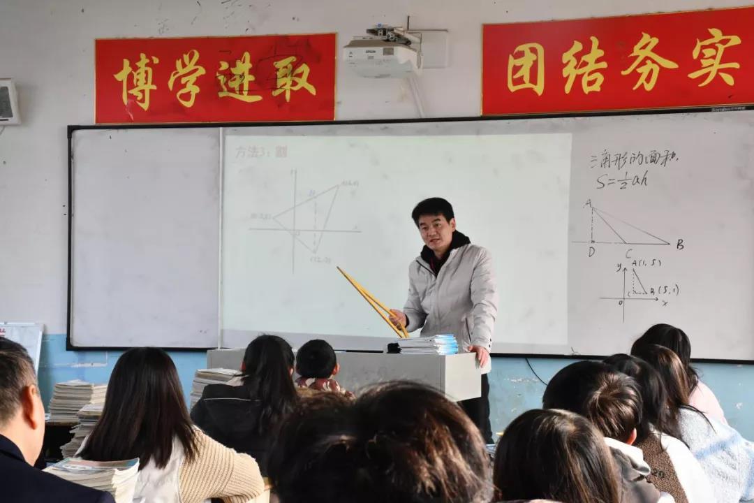 魏利兵老师以《在平面直角坐标系中,求三角形的面积》为课题,为高溪市九年级的学生讲述了一堂精彩纷呈的数学课。魏老师用专业的教学知识和丰富的教学经验为学生讲述了如何用“铅垂高、水平宽”的方法在平面直角坐标系中,求三角形的面积。