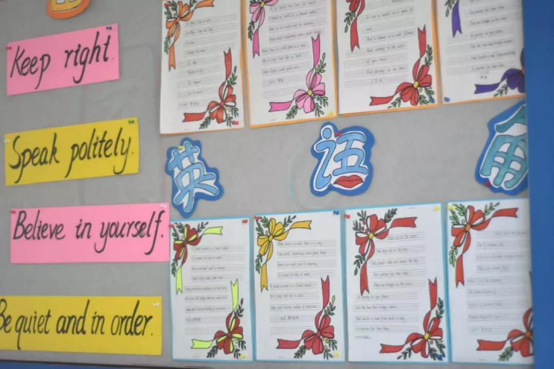 校园文化橱窗以年级组为单位,内容有:教师风采,学生活动,趣味学科知识等。
